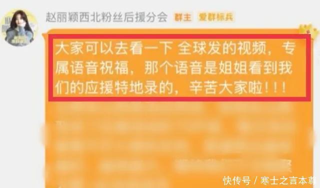 我就说赵丽颖和“颖火虫”天下第一好!10月16日,有丽粉发出了一张截图!原来这条生日祝福是颖宝特意录的呀!截图上表示,生日语音是颖宝看到“颖火虫”得应援特地录的! 要被这个小丽丽暖到啦!这个丽丽酱不说,但是默默做了很多事情!喜欢!